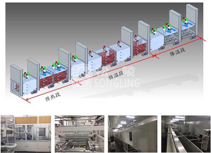 隧道式全自動真空烘烤線是根據(jù)客戶現(xiàn)有生產(chǎn)和工藝需要,專門開發(fā)的一款電池注液前烘烤的自動真空隧道式流水線;如果更換相關工裝夾具,同時也可以進行極卷的烘烤和電芯規(guī)格烘烤。